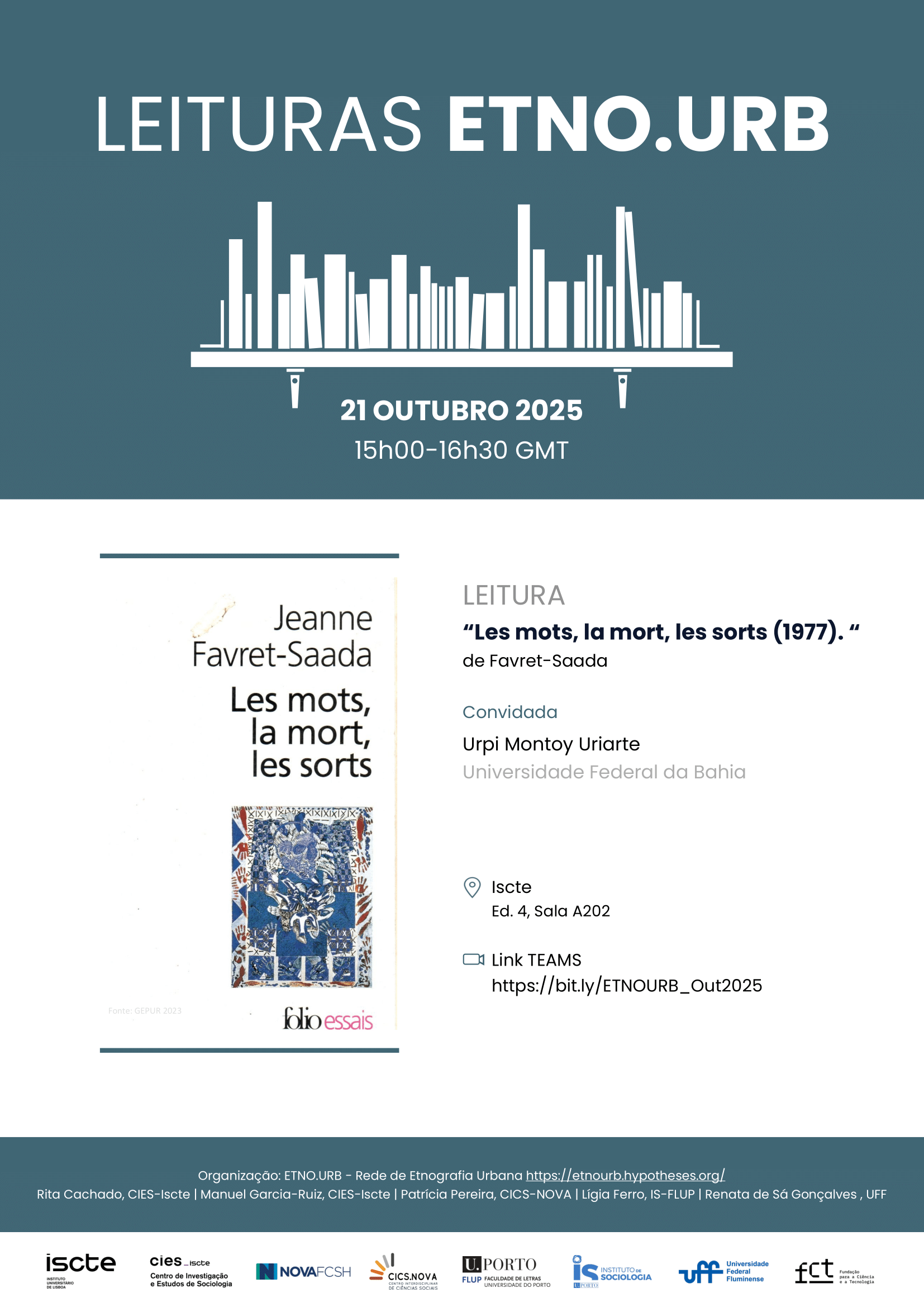 No dia 21 outubro 2025, realiza-se o próximo encontro de leitura da publicação "Les mots, la mort, les sorts (1977)", de Favret-Saada.