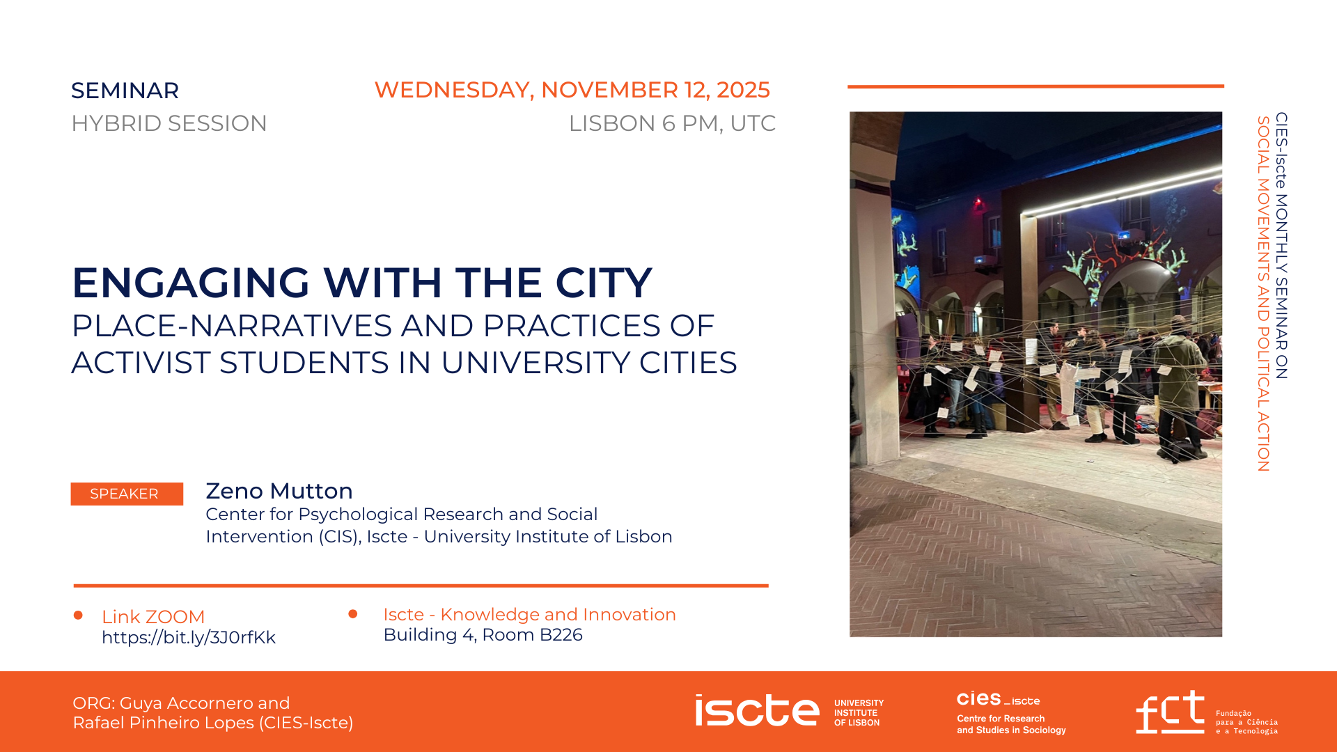 Integrado no Ciclo Mensal de Seminários Movimentos Sociais e Ação Política, o seminário "Engaging with the City: Place-Narratives and Practices of Activist Students in University Cities ", decorre no dia 12 novembro 2025, em formato hibrído.