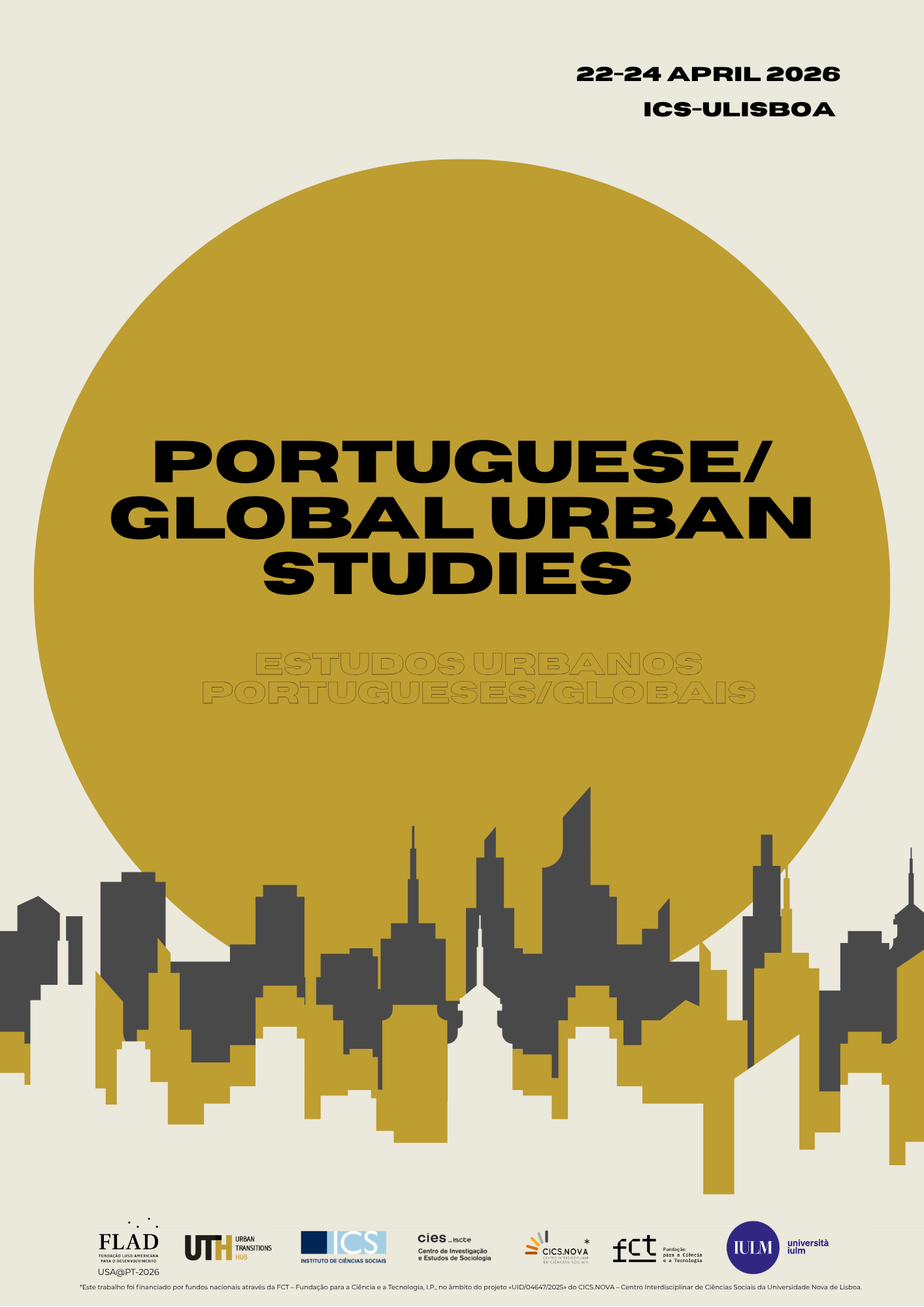 A conferência Estudos Urbanos Portugueses/Globais toma como ponto de partida as recentes discussões sobre a possibilidade de estudos urbanos globais. O português – considerado como língua internacional – serve como alavanca para mapear o passado, presente e futuro da investigação urbana crítica nos e sobre os países que utilizam o português como língua oficial (países de língua oficial portuguesa).