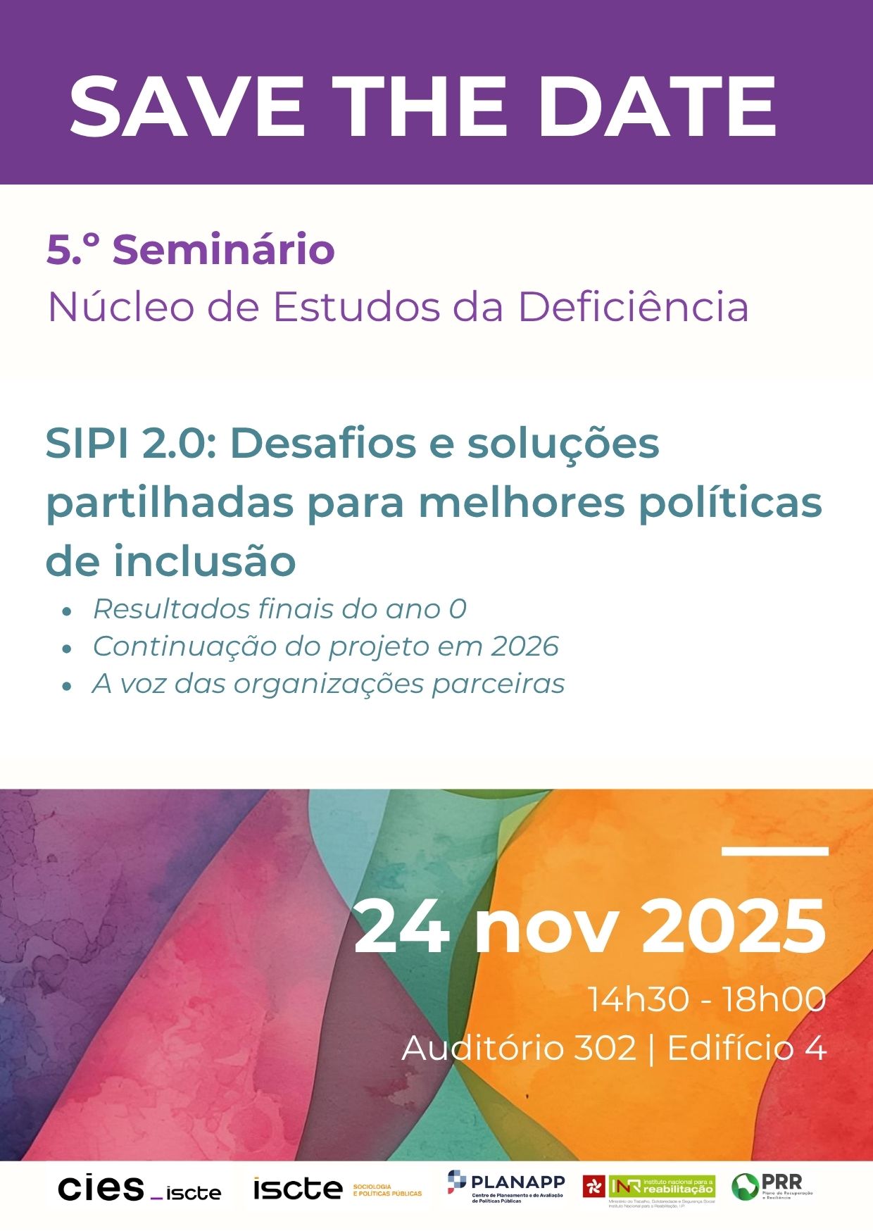 Neste evento, que decorrerá no dia 24 de novembro de 2025, no Iscte, serão apresentados novos apuramentos e os resultados finais do projeto, bem como perspetivas de continuação dos trabalhos para 2026. Serão igualmente partilhadas as reflexões das organizações parceiras para a melhoria das políticas públicas com impacto nas condições de vida das pessoas com deficiência.