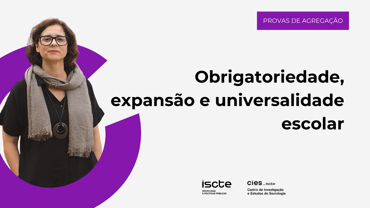 Terão lugar no próximo dia 5 de fevereiro as Provas de Agregação em Políticas Públicas da Professora Doutora Susana da Cruz Martins. As provas incidem sobre o tema “Obrigatoriedade, Expansão e Universalidade Escolar” e decorrerão entre as 11h e as 13h e entre as 15h e as 17h, na sala B327 do edifício 4 do Iscte - Instituto Universitário de Lisboa.