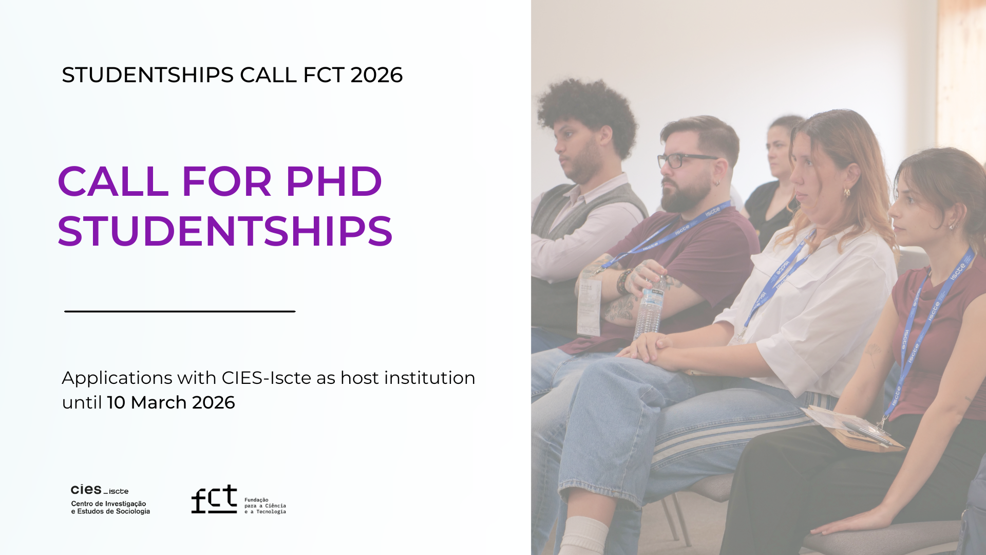 The Centre for Research and Studies in Sociology (CIES-Iscte) of Iscte – University Institute of Lisbon invites doctoral students interested in applying to the 2026 FCT PhD Scholarships Call to submit an expression of interest indicating CIES-Iscte as host institution by 10 March 2026.