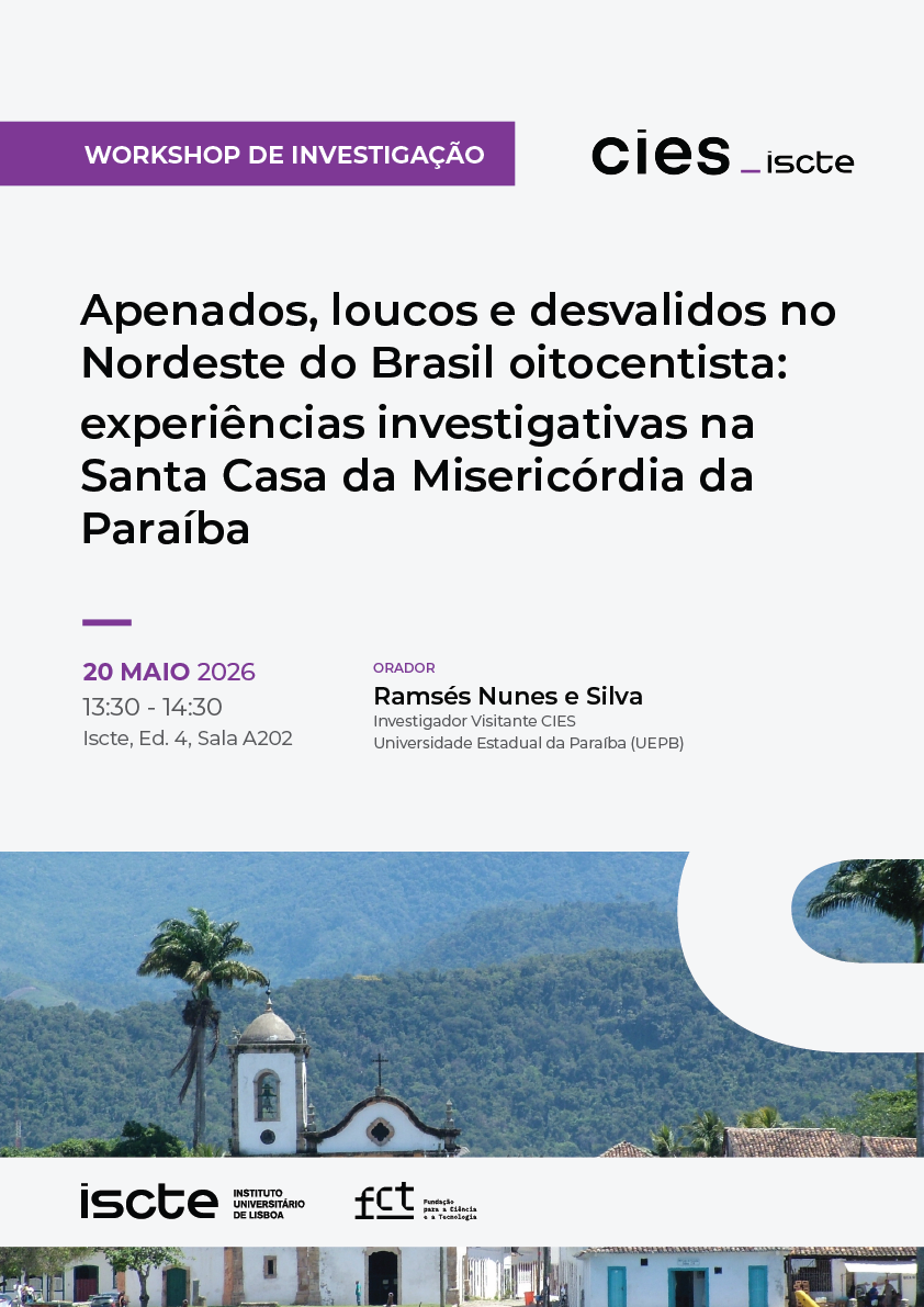 The next CIES Research Workshop will take place on 20 May 2026, under the theme: “Prisoners, the Insane and the Destitute in Nineteenth-Century Northeast Brazil: Research Experiences at the Santa Casa da Misericórdia da Paraíba”